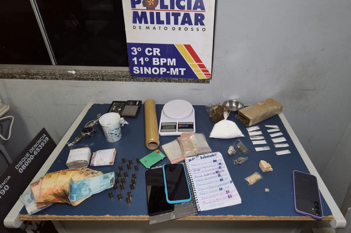 Policiais Militares de Santa Carmem (40 km de Sinop) prenderam, ontem, um casal suspeito de envolvimento com o tráfico de drogas, após denúncia anônima feita por moradores. No local indicado, os policiais localizaram e apreenderam grande quantidade de entorpecentes, entre maconha, cocaína e pasta base de cocaína, além de balanças de precisão, dinheiro em espécie, embalagens utilizadas para o tráfico, anotações relacionadas ao comércio ilícito e munições. Também foi encontrada uma motocicleta, que, segundo a PM, era utilizada na prática criminosa.