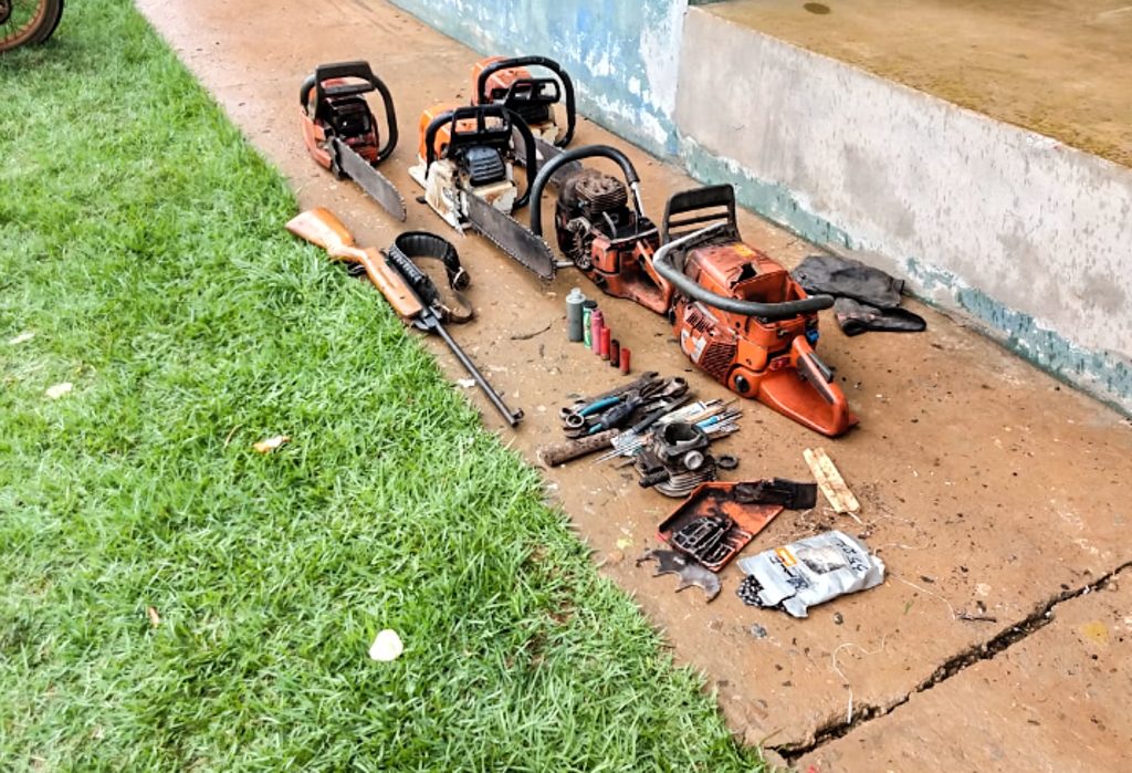 A Polícia Militar cumpriu 12 mandados de busca e apreensão no setor rural e na cidade de Feliz Natal (131 quilômetros de Sinop), esta manhã. Foram apreendidos tabletes de entorpecentes, duas espingardas (calibres não informados), cinco motosserras, madeiras serradas e seis motocicletas.