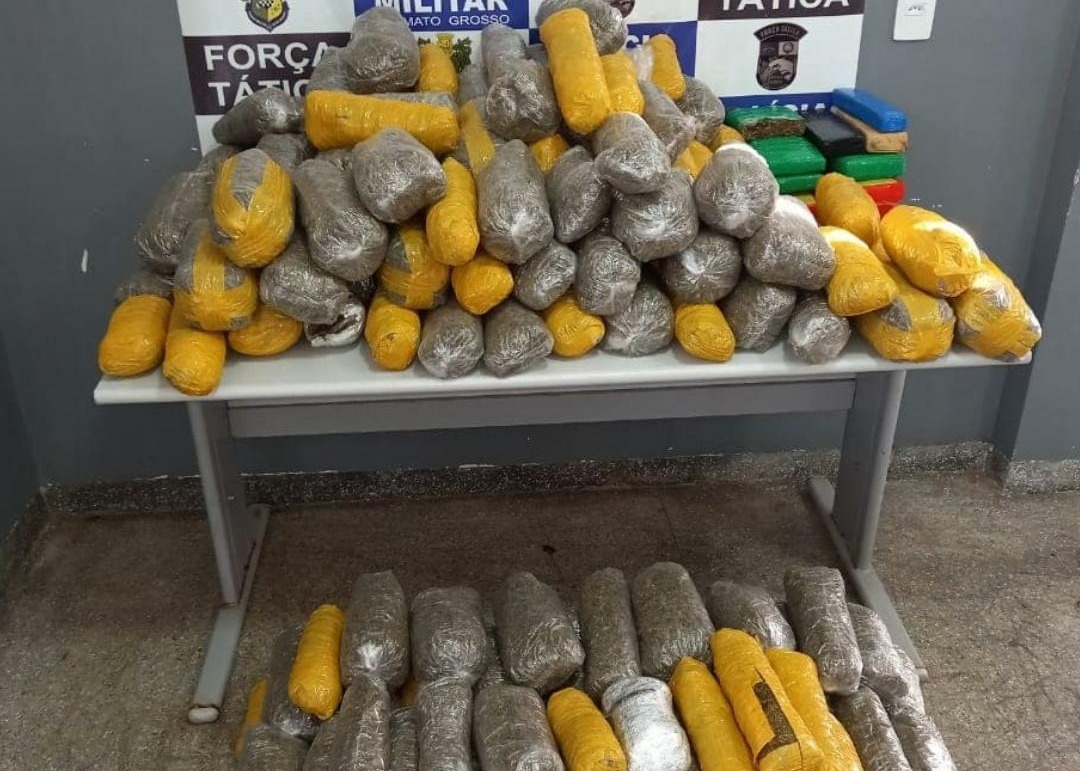 Os policiais da Força Tática fecharam um depósito de entorpecentes e artefatos explosivos do crime organizado, ontem à tarde, em Rondonópolis (214 quilômetros e Cuiabá). Cerca de 100 quilos de drogas entre maconha e haxixe foram apreendidos.