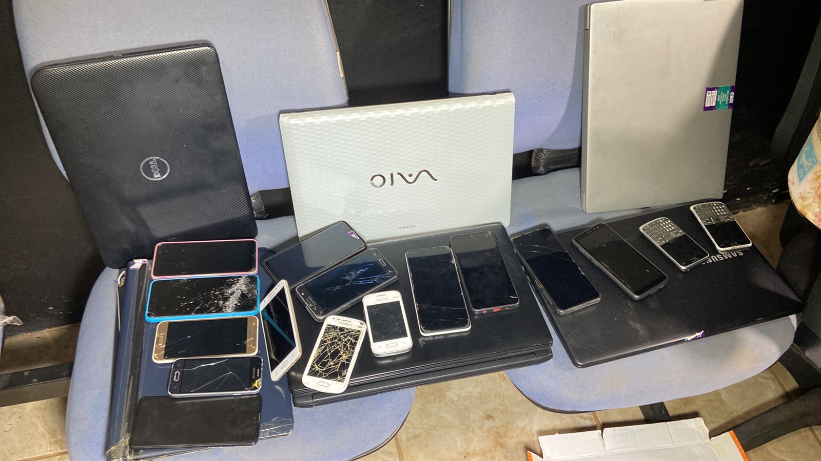 O endereço apontado pelo acusado fica no bairro São Mateus, onde a PM localizou um homem e uma mulher suspeitos de receptar os produtos. “No local encontramos um casal que confirmou a compra de vários produtos que estavam nessa quitinete. Quatro vítimas em ocorrências distintas, incluindo as dessa madrugada e até as de um mês atrás, já identificaram vários pertences, que foram recuperados e entregues na delegacia”, disse o policial.