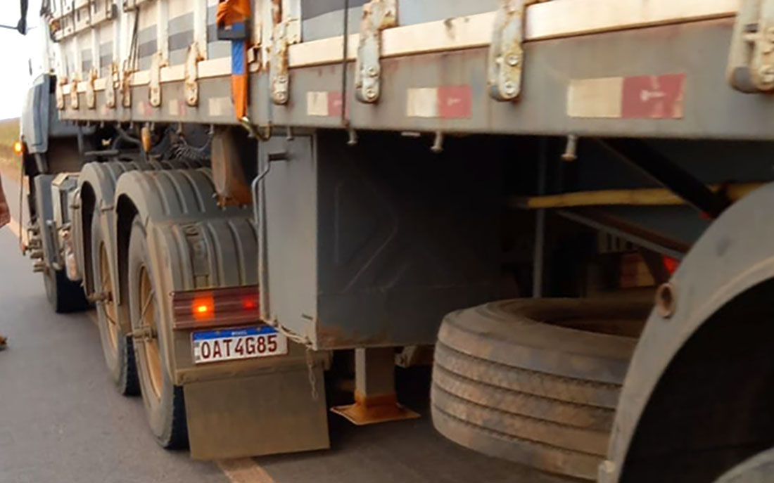 Os policiais solicitaram documentos, constataram que a CNH apresentada não estava cadastrada e constava um nome diferente do RG. Em revista no veículo, a equipe localizou documentação de outros veículos e outras placas. Mais adulterações foram flagradas pela equipe, como chassi adulterado do caminhão, placas e na etiqueta de marcação do cavalo mecânico.