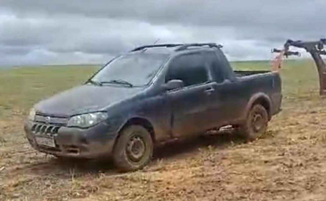 Conforme o boletim de ocorrência, a equipe recebeu informações de que o veículo estava próximo à rodovia, na área de plantio de um fazenda. Durante checagem, foi constatado ser material de furto.