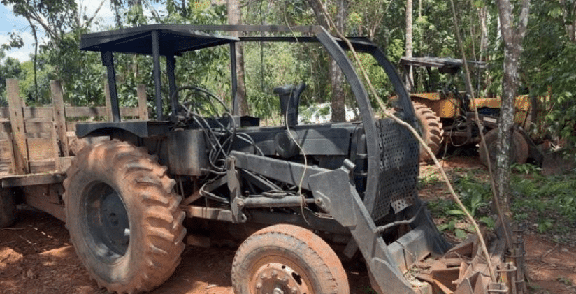Policiais da Polícia Militar de Proteção Ambiental apreenderam, ontem, dois tratores, uma caminhonete e cinco motosserras, em São José do Rio Claro (296 km de Cuiabá). Um homem, de 46 anos, foi detido em flagrante por crime ambiental.