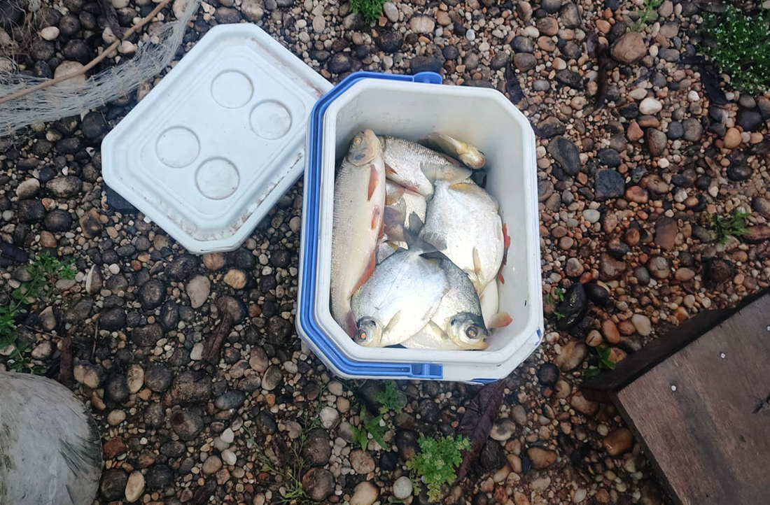 De acordo com o registro policial, a equipe realizava patrulhamento na região, quando localizou três suspeitos praticando a pesca predatória com o tarrafão (rede de pesca circular com pequenos pesos distribuídos em torno de toda a malha) no rio Paraguai.