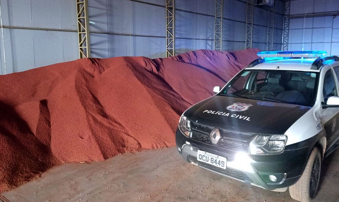 Os investigadores da Polícia Civil apreenderam, ontem, em uma propriedade, localizada na MT-242, sentido Ipiranga do Norte, 150 toneladas de cloreto de potássio avaliado em R$ 250 mil que saíram do Porto de Miritituba, no Pará e houve desvio durante o destino de origem. O proprietário do local foi autuado e responderá na justiça pelo armazenamento.