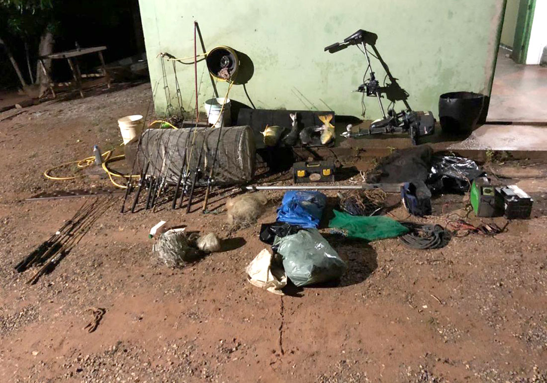 A Polícia Militar de Denise (141 quilômetros ao Médio Norte de Cuiabá) com apoio da Polícia Ambiental apreendeu ontem, diversos apetrechos de pesca, espécies de peixes malhados fora da medida, além de um motor aquático para embarcação durante patrulhamento fluvial no rio Paraguai. Ninguém foi preso.