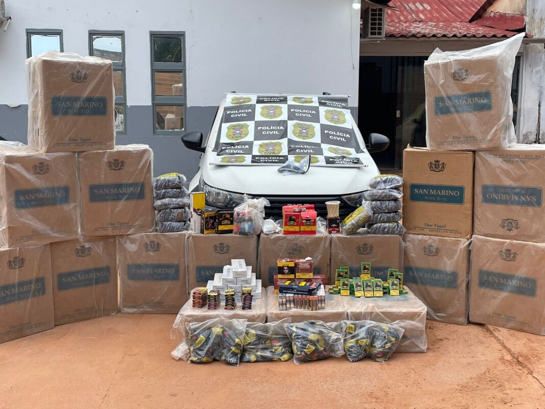 Um homem flagrado, ontem, com dezenas de caixas de cigarro e uma arma de fogo foi autuado pelos crimes de contrabando, descaminho e porte ilegal de arma de fogo pela Polícia Civil de Porto Alegre do Norte (1031 quilômetros de Cuiabá), na região nordeste do estado.