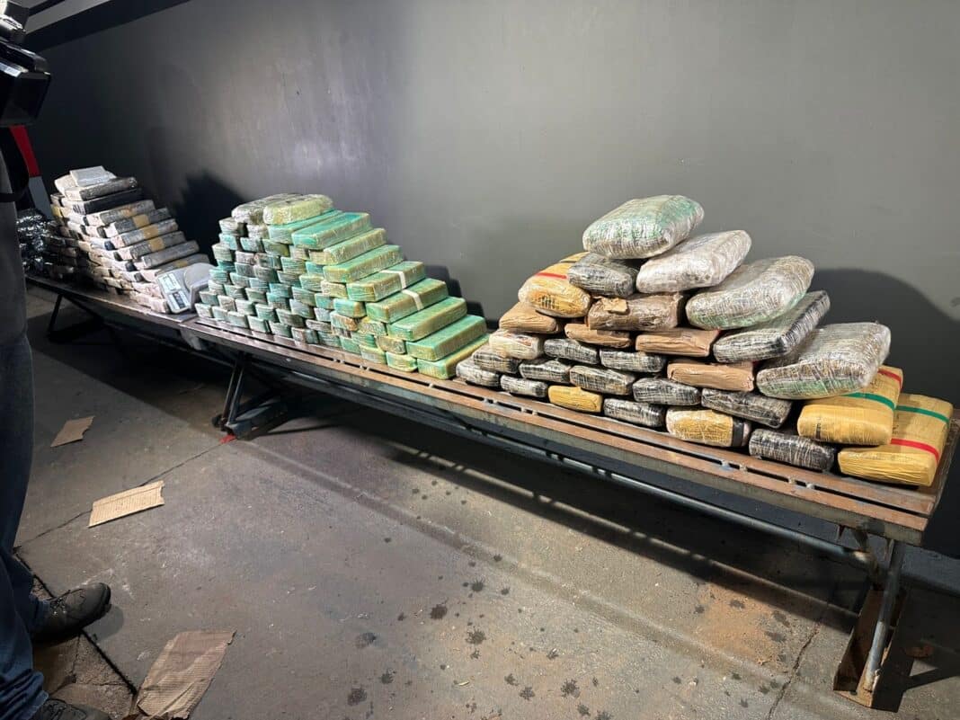 Em buscas no imóvel, ainda na garagem, a equipe encontrou tabletes de droga caídos no chão. Diante das suspeitas, resolveram entrar na residência e encontraram mais entorpecentes em um dos cômodos. No total, 65 tabletes de cocaína, 62 de pasta base, 28 de maconha e 11 porções grandes de skunk (supermaconha).