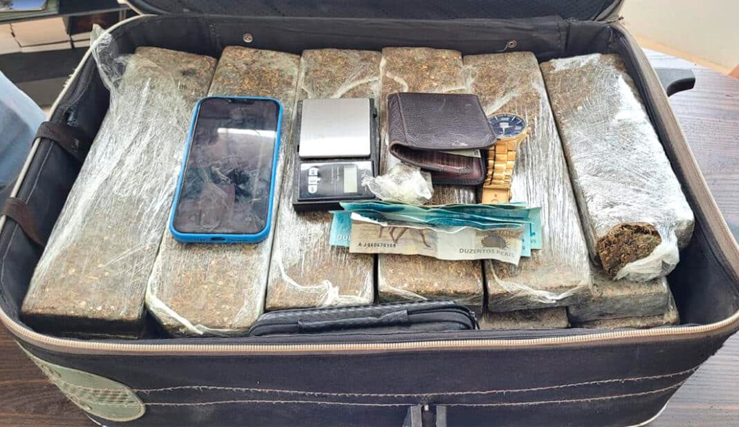 Mas ele foi cercado pelos policiais que fizeram buscas no cômodo e acharam a maleta com drogas. Ele foi encaminhado à delegacia municipal.