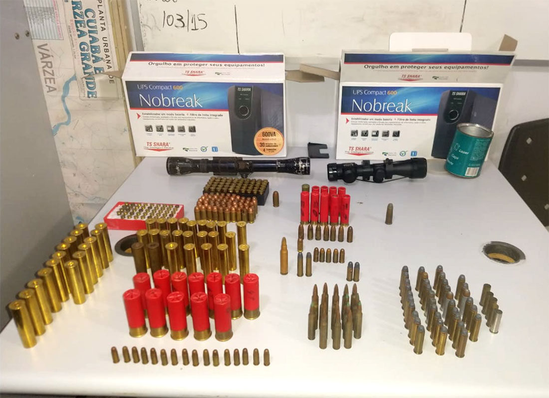 Um arsenal de armas de fogo foi apreendido pela Polícia Civil, pela Delegacia Especializada de Homicídio e Proteção (DHPP), hoje de manhã, no bairro Pedra 90, na capital, durante ação para cumprimento de quatro mandados de busca e apreensão domiciliar. Em uma das residências alvos, foram encontradas 16 armas de vários calibres e mais de 100 munições. No local reside um casal, sendo ele sargento da Polícia Militar da reserva e ela cabo da PM. O policial aposentado não foi encontrado na residência e sua esposa foi conduzida à DHPP para esclarecimentos, mas ela não será autuada em flagrante.