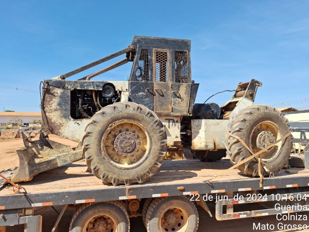 Um trator roubado em fevereiro do pátio da Prefeitura de Cotriguaçu foi recuperado pela Polícia Civil em uma ação conjunta com o apoio da Delegacia de Colniza. Um homem de 44 anos foi preso em flagrante por receptação qualificada e posse ilegal de arma de fogo.