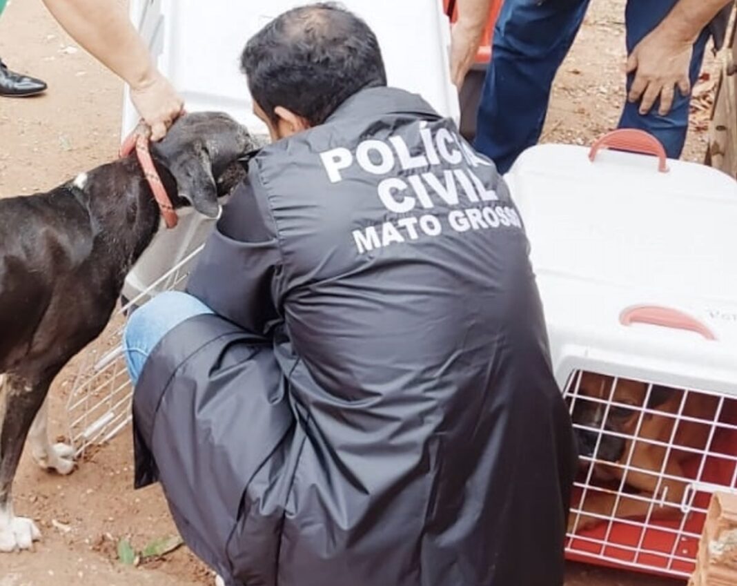 A Polícia Civil informou, hoje, que doze cães em situação de abandono e maus-tratos, foram resgatados ontem, em Cuiabá, pela equipe da Delegacia Especializada do Meio Ambiente, em conjunto com a secretaria Adjunta de Bem-Estar Animal, em uma residência no bairro Jardim Industriário. Os policiais, fiscais e a veterinária constataram que o tutor dos animais não reside no local, totalmente abandonado, sem ligação elétrica e disjuntor desligado. Foi verificado que os cães de diversas raças estavam confinados em baias, no quintal. No interior da residência havia outro animal trancado.