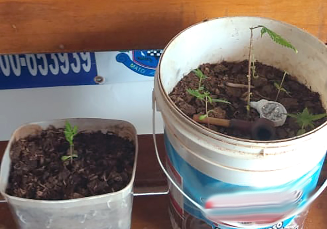 A Polícia Militar encontrou, ontem, em uma residência localizada na região central de Denise (206 quilômetros de Cuiabá) sete pés de maconha que estavam plantados em baldes colocados na varanda do imóvel. No local, também foram encontrados dois cachimbos para uso de entorpecentes. Uma mulher que estava na casa acabou presa.