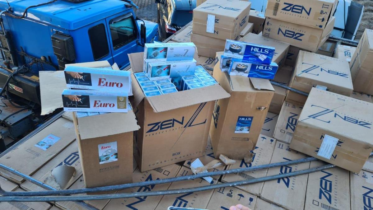 Quando os dois caminhões foram parados, os policiais encontraram 1.600 caixas de cigarro, com total de 800 mil carteiras do produto ilegal. Na abordagem aos caminhões, o motorista de um deles conseguiu fugir.