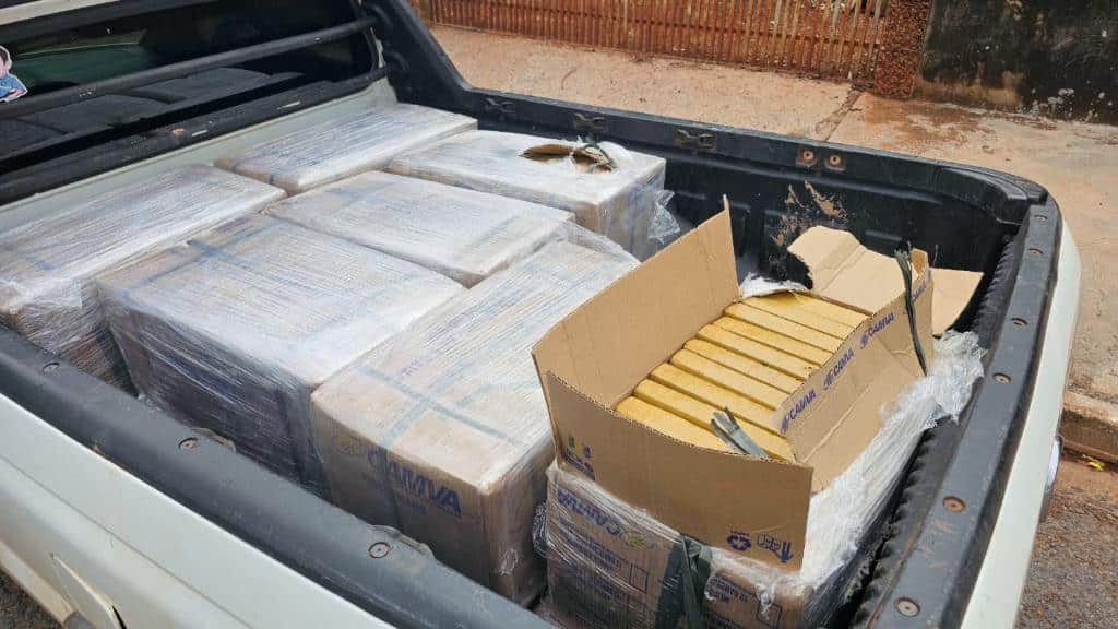 Aproximadamente meia tonelada de maconha foi apreendida pela Polícia Civil, esta tarde, em Várzea Grande. Um jovem, de 26 anos, foi preso em flagrante por tráfico de drogas. A ação foi realizada pela Gerência de Combate ao Crime Organizado e pela Delegacia Especializada de Repressão ao Crime Organizado. O carregamento contendo 566 tabletes de maconha estava acondicionado dentro de quinze caixas e estava sendo transportado na carroceria de um veículo Fiat Strada de cor branca.