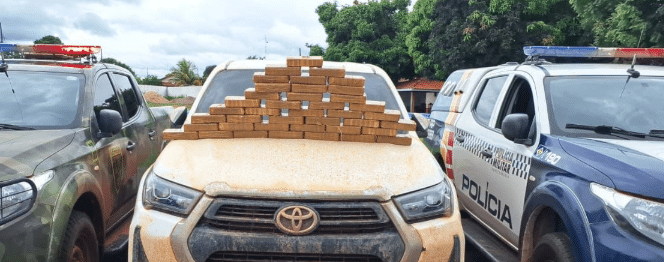 Durante patrulhamento, na rodovia BR-364, as forças policiais realizaram abordagem de rotina a uma caminhonete Hilux branca, ocupada por dois homens. Os militares realizaram vistoria minuciosa no interior do veículo e identificaram um compartimento falso em meio aos bancos traseiros da caminhonete. No local, foram encontrados 40 tabletes de substância análoga a pasta base de cocaína.