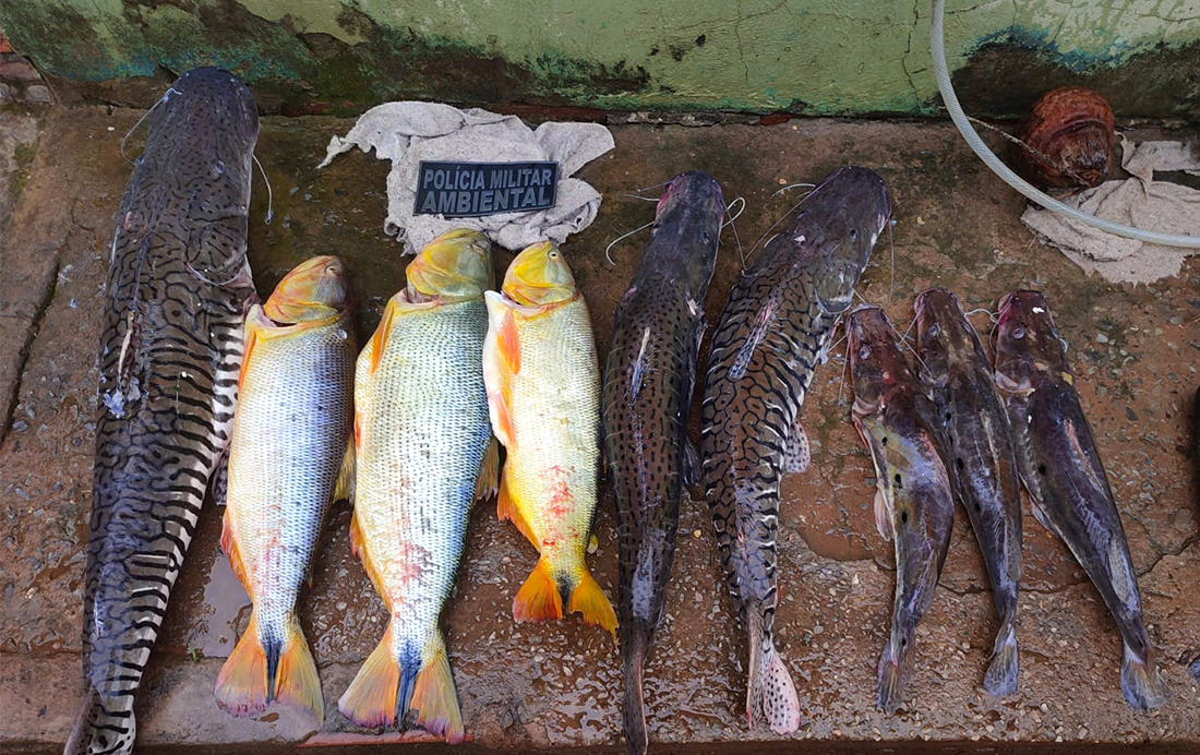 O Batalhão de Polícia Militar de Proteção Ambiental prendeu dois acusados de transportar pescado durante época de piracema, com peixes abaixo da medida estipulada por lei e espécies proibidas, ontem, em uma estrada vicinal na área rural de Barra do Bugres (176 quilômetros de Cuiabá). A multa aplicada foi de R$ 51,2 mil e foram apreendidos 32 quilos de pescado entre cachara, pintado, dourado, jurupoca e piavuçu e um automóvel VW Saveiro.