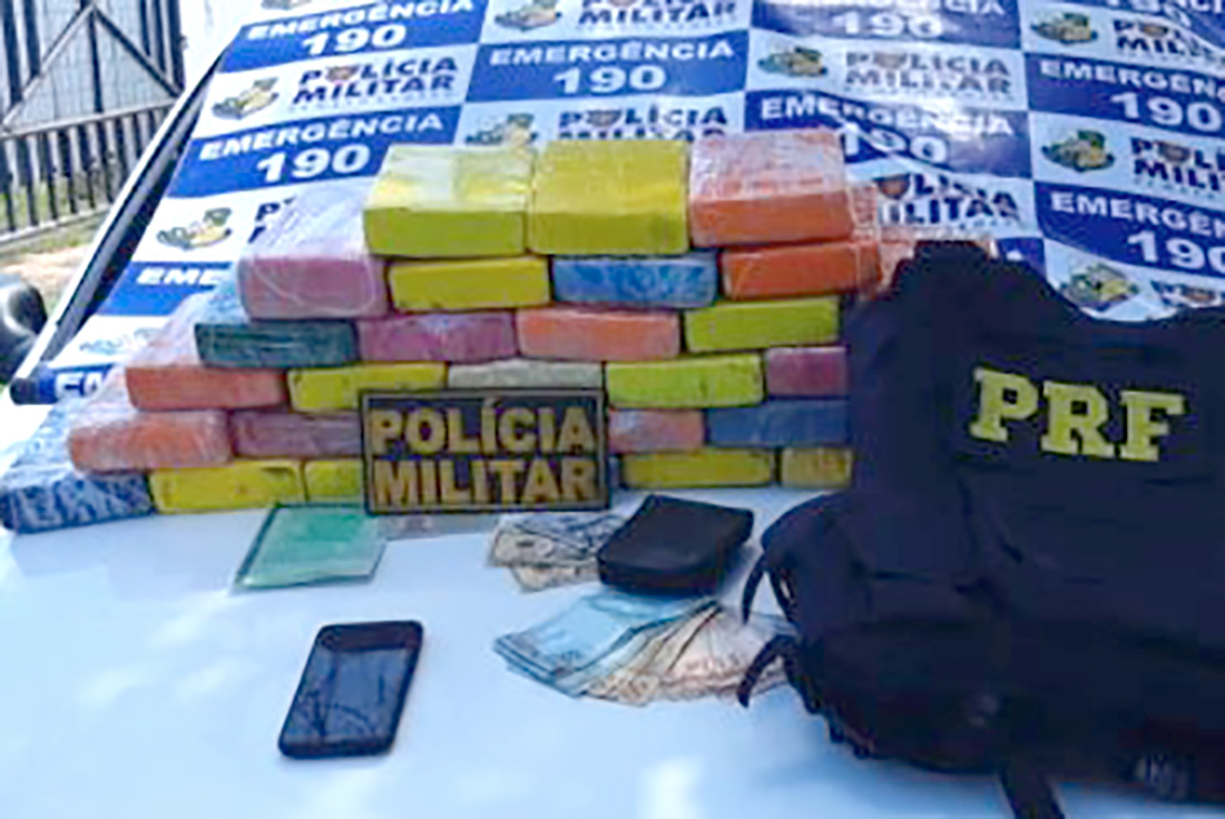 Em busca no automóvel, foram encontrados 33 tabletes de cloridrato de cocaína que estavam nas portas do veículo.
