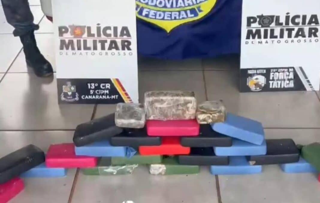 Em buscas no carro, a equipe policial encontrou no painel uma quantidade de 23 tabletes de pasta base de cocaína, com um peso aproximado de 25,30 kg. Em relato aos policiais, o suspeito informou que saiu com a droga da cidade de Chapada dos Guimarães e que seria entregue em Castanhal, no Pará.