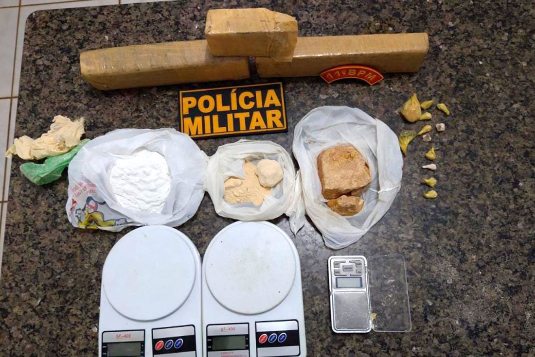 A ação da Polícia Militar ocorreu em Feliz Natal (130 quilômetros de Sinop), ontem, com objetivo de combater o tráfico de drogas. Foram apreendidos dois tabletes de maconha e diversas porções de pasta base de cocaína.