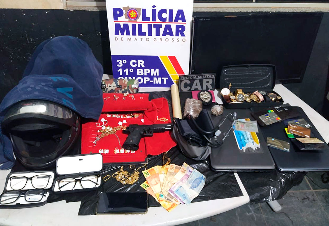 A ação realizada por meio do grupo do Comando de Ação Rápida (CAR) e Agência Regional de Inteligência (ARI), resultou na recuperação de joias, roupas, um notebook, relógios, óculos de grau, um simulacro de pistola, um tablete de maconha e uma moto Yamaha roxa, possivelmente utilizada nos roubos.