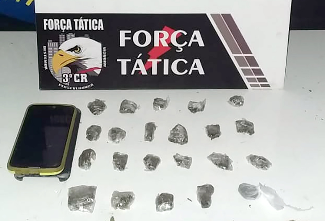 O suspeito, de 19 anos, foi preso, ontem, com 22 porções de maconha já embaladas para venda. A ação foi registrada na avenida União do Norte, bairro Dauri Riva, após denúncias anônimas.