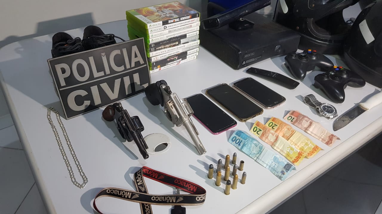 “Devido à onda grande de crimes envolvendo homens em motocicletas, começamos a dar uma atenção especial para isso. Separamos alguns suspeitos com passagens e, na data de hoje, chegamos ao endereço no bairro São Domingos. No local encontramos uma TV que eles confessaram ser produto de furto e após revista localizamos dois revólveres”, disse o investigador Luís Flávio.