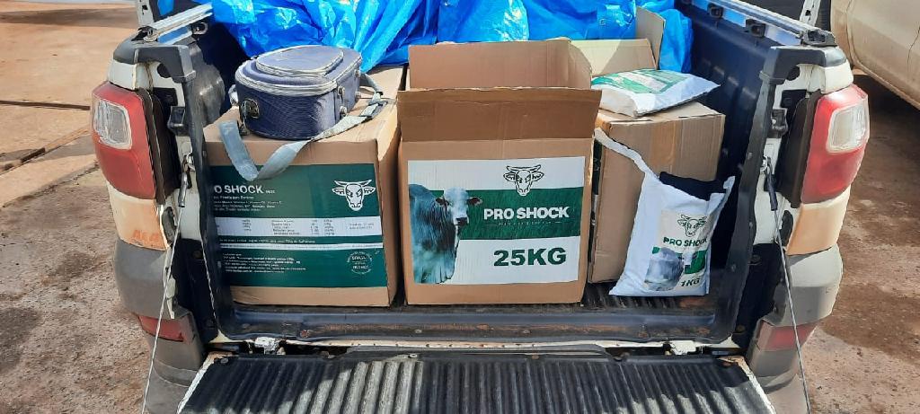 Conforme narrativa dos policiais, inicialmente o homem revelou se tratar de suplemento animal para ser misturado ao sal. Porém, uma apuração preliminar indicou que seria defensivo (veneno) utilizado em lavouras de grãos.