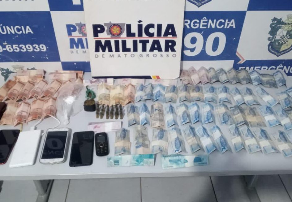 Consta no boletim de ocorrência que foram apreendidas com os suspeitos porções de cocaína, maconha, oito munições calibre 38, outras 10 de calibre 32 e cerca de R$ 576.