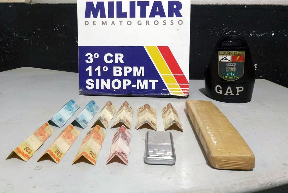 O jovem, de 20 anos, que se identificou como “gerente do tráfico” de uma facção criminosa e a esposa foram presos ontem à noite, na avenida Pantanal, no bairro Maria Vindilina. No VW Gol branco em que estavam, os policiais encontraram um tablete de maconha embaixo do tapete do carro e enrolado em uma camiseta, além de balança.