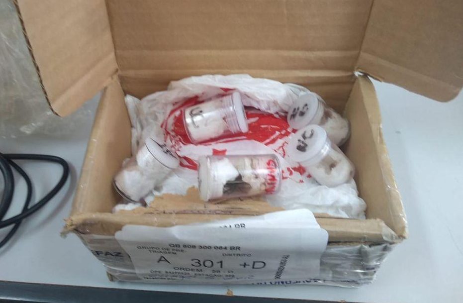 A equipe da Polícia Militar foi acionada para acompanhar a suposta entrega de animais silvestres via Correios, no bairro Centro- Sul. No endereço, os policiais verificaram que a caixa de papelão lacrada continha cinco frascos plásticos fechados e sem ventilação com aranhas vivas dentro.