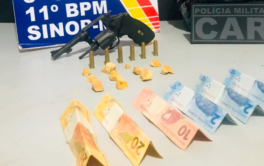 O suspeito, de 27 anos, foi preso, ontem à noite, no bairro Daury Riva com drogas e um revólver calibre 38, que estava escondido embaixo do seu colchão. Uma denúncia apontou que o homem era membro de uma facção criminosa e teria vindo de Sorriso para praticar o tráfico em Sinop e assassinar integrantes de uma organização rival.