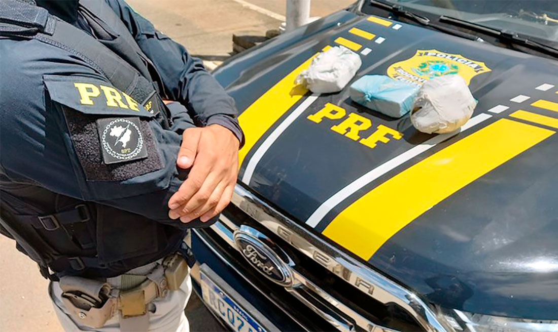 Diante da situação,foi solicitado o documento de identificação do homem de 24 anos. O passageiro, na tentativa de ludibriar a fiscalização, entregou documentação falsa, o que elevou ainda mais as suspeitas dos policiais, que iniciaram o procedimento de busca pessoal. No decorrer das atividades, foi encontrado aproximadamente 1kg de pasta base, 1 kg de cloridrato de cocaína e 1kg de substância análoga ao crack em sua bagagem pessoal.