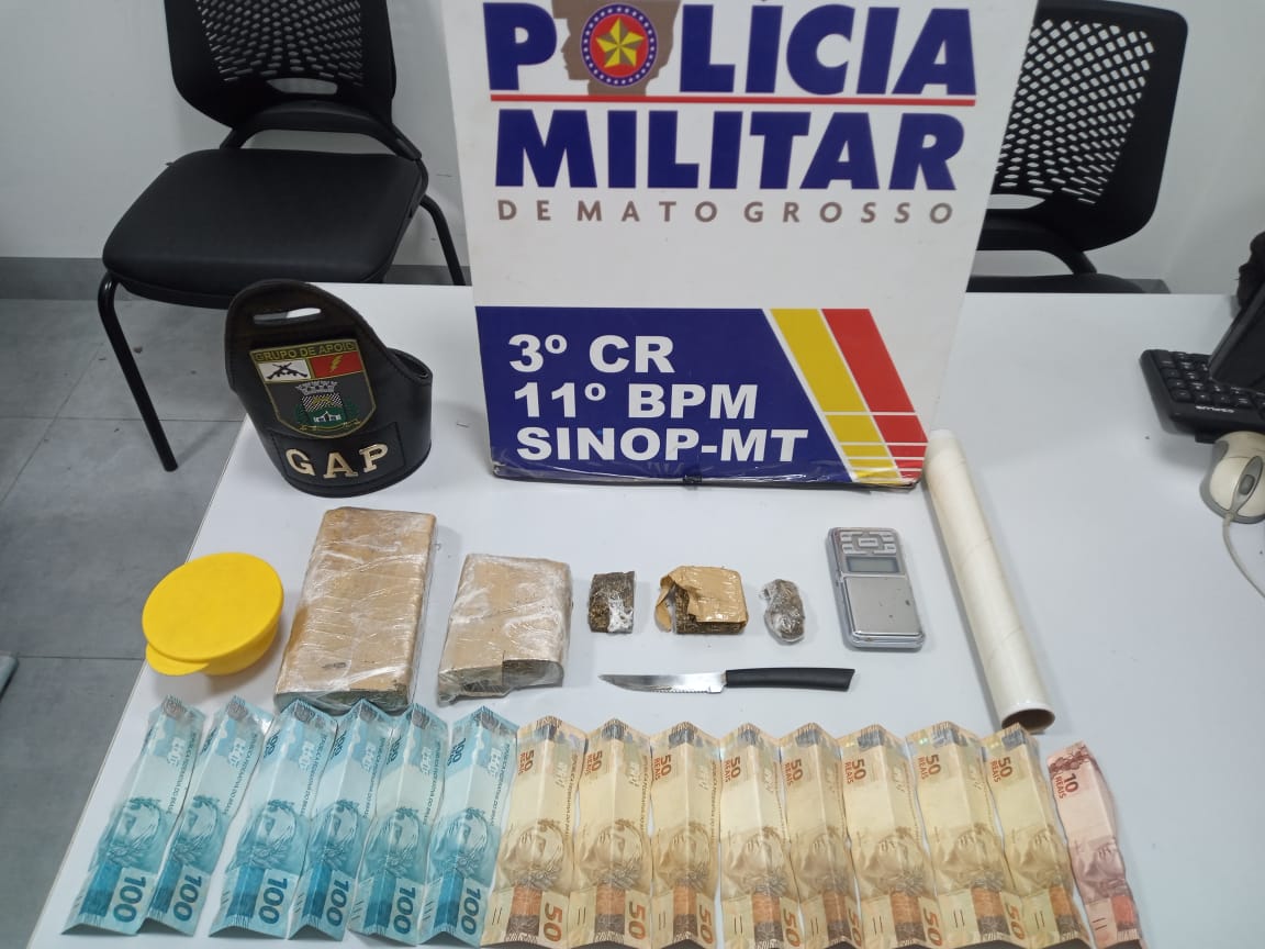 A Polícia Militar prendeu, ontem à noite, um homem acusado de tráfico de drogas em Sinop. Com o suspeito, os militares localizaram dois tabletes e algumas porções de maconha, totalizando um quilo e meio.