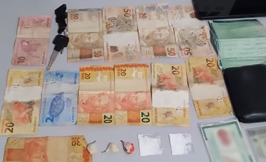 Durante a busca pessoal, foram encontradas porções de cocaína e pasta base da mesma droga. Com isso, o acusado acabou relatando que estava utilizando a motocicleta para fazer o tráfico nas cidades de Peixoto e Matupá.