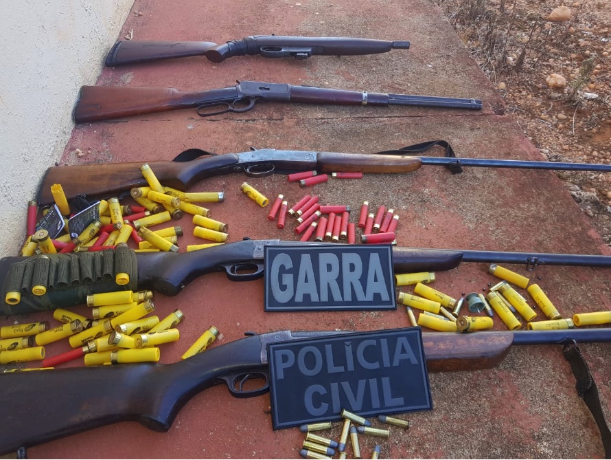 A Polícia Civil de Diamantino (184 quilômetros de Cuiabá) com apoio do Grupo Armado de Resposta Rápida (Garra) de Nova Mutum, recuperaram, ontem, em uma fazenda na MT-249 duas carretas sem o cavalo mecânico, com registro de furto, e apreenderam um rifle, três espingardas, uma carabina, diversas munições, além 147 galões de defensivos agrícolas que estavam no reboque. Um homem, de 46 anos, que estava na propriedade foi preso.