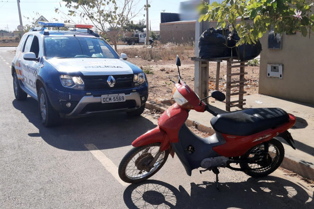 A Honda Biz vermelha foi localizada, esta tarde, pela Polícia Militar na rua Projetada 1, no bairro Jardim dos Cravos. A moto estava estacionada na frente de um estabelecimento há cerca de dois dias, um morador estranhou a situação e acionou as autoridades. Na checagem, o registro de furto foi descoberto.