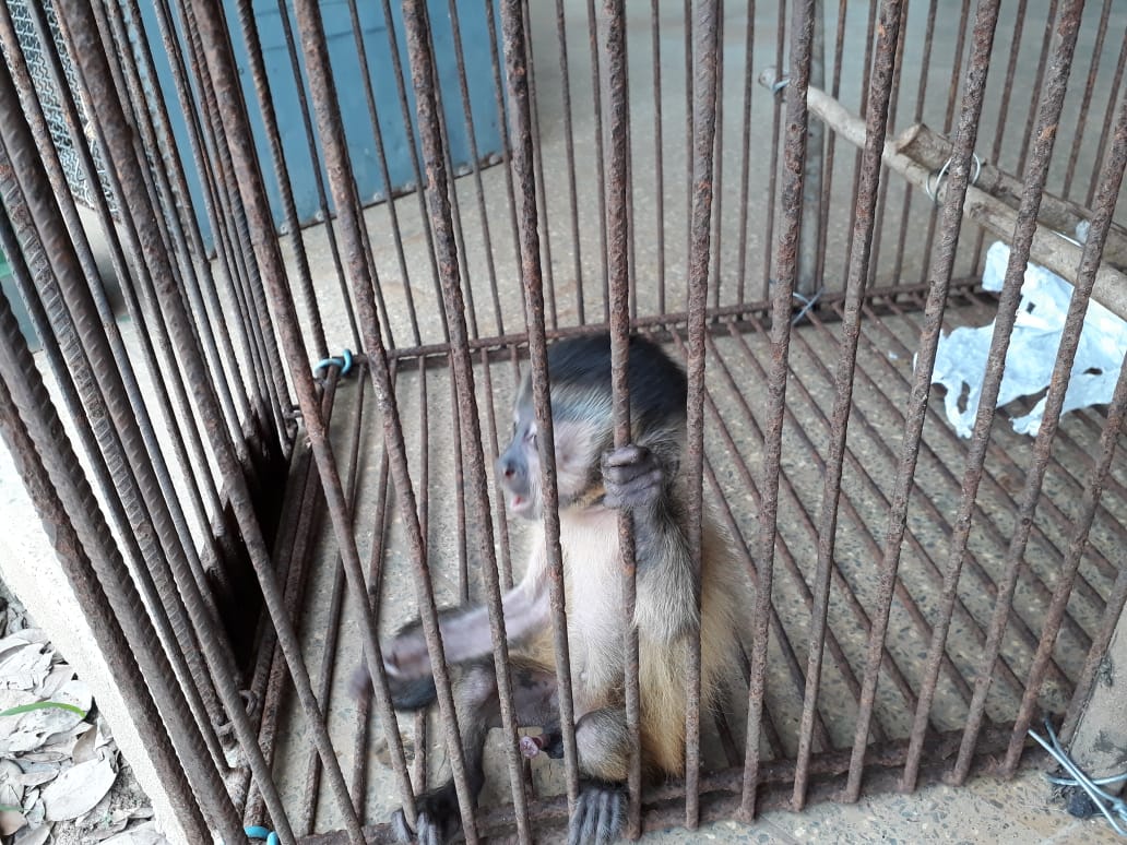 Durante o cumprimento de mandado de busca domiciliar em Araputanga (330 km de Cuiabá), policiais militares realizaram buscas no interior da residência e localizaram animais silvestres mantidos em cativeiro. Foram resgatados oito jabutis, duas serpentes da espécie Jiboia e um filhote de macaco prego.