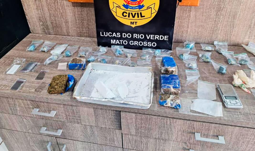 Investigadores da Polícia Civil detiveram o jovem, de 24 anos, ontem à tarde, acusado por tráfico de entorpecentes e associação ao tráfico, no bairro Rio Verde, em Lucas do Rio Verde. Na ação, foram apreendidos 5 tabletes de maconha, 25 porções de pasta base e uma vasilha contendo cocaína.