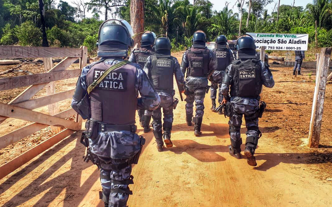 A operação de desocupação será mantida pelos policiais nos próximos dias até concluir a reintegração de posse nesta fazenda.