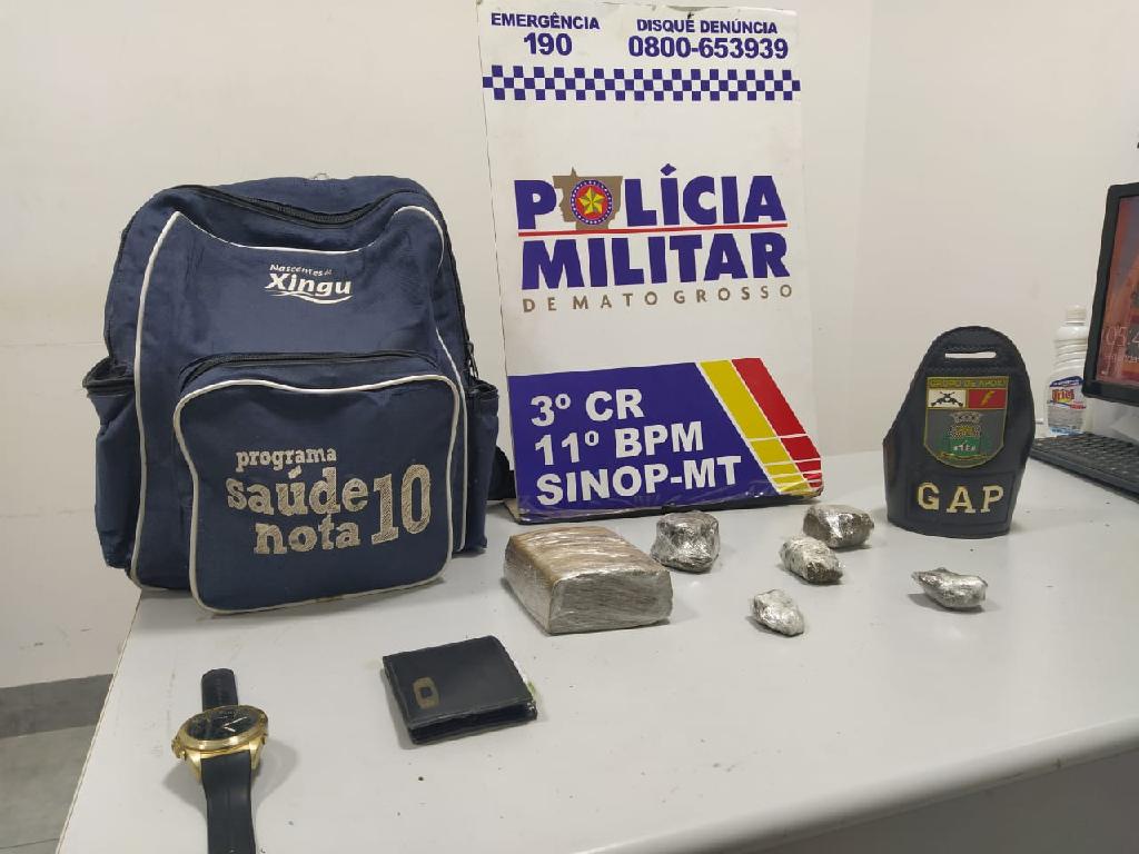 Policiais do Grupo de Apoio (GAP) do 11º Batalhão de Polícia Militar prenderam, hoje, em Sinop, um jovem de 19 anos por tráfico de drogas e associação criminosa. O suspeito foi localizado em um ônibus que saiu de Rondonópolis.