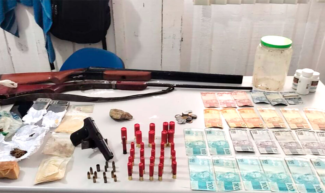 Dois adolescentes também foram apreendidos por atos infracionais análogos ao tráfico de drogas. Após investigações, a Polícia Civil identificou pontos de venda de entorpecentes, conhecidos como ‘lojinhas’, e também o suspeito de gerenciar o abastecimento das bocas de fumos na cidade e o outro que agia na zona rural.