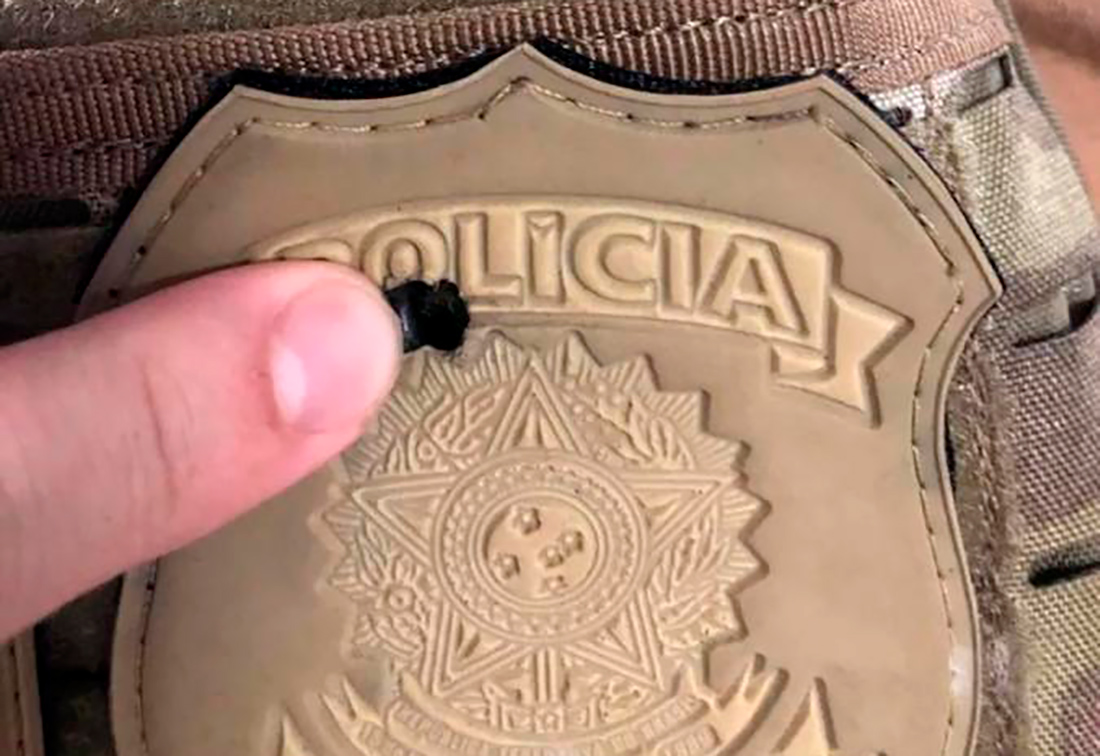 Um dos agentes da Polícia Federal foi baleado, esta manhã, no Distrito do Sucuri, em Cuiabá, durante o cumprimento das ordens judiciais da força-tarefa nacional para desarticular o tráfico de drogas comandado pela facção criminosa em Mato Groso e mais 19 estados. O agente estava de colete à prova de balas e não ficou ferido, informa a Gazeta Digital. Os policiais chegaram de viatura ostensiva para cumprir os mandados, se identificaram como agentes e foram recebidos por tiros. O suspeito acabou preso em flagrante por tentativa de homicídio e porte ilegal de arma de fogo.