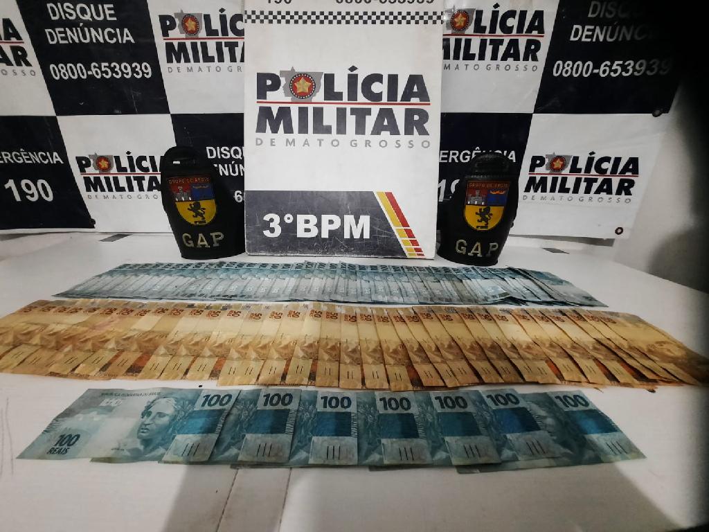 Policiais militares do Grupo de Apoio apreenderam, ontem, mais de R$ 6 mil em espécie, e prenderam dois homens, de 18 e 19 anos, por estelionato, no Residencial Wantuil de Freitas, em Cuiabá.