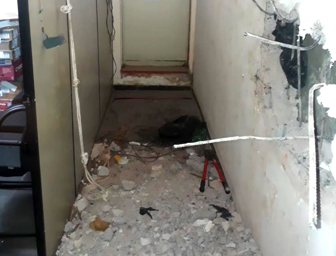 Os policiais tiveram que arrombar a porta da frente para conseguir entrar e logo identificaram a tentativa de arrombar o cofre. Os ladrões que estavam na agência viram os policiais e fugiram.