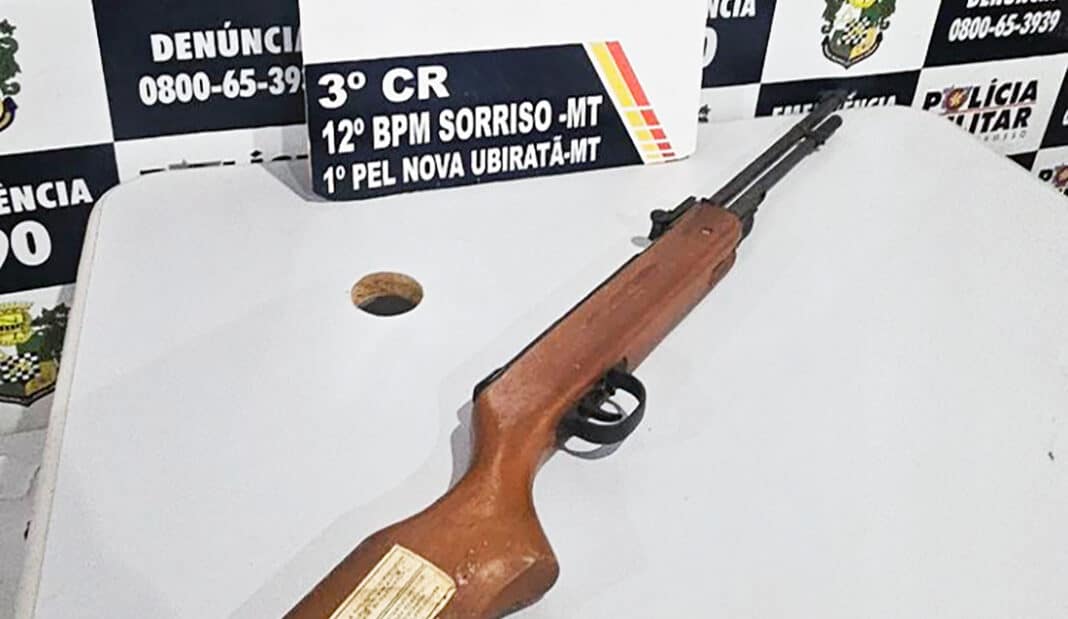 O colaborador, de 46 anos, foi preso pela Polícia Militar, ontem à noite, ao ser acusado por ameaças de morte e posse ilegal de arma de fogo, em propriedade rural às margens da rodovia MT-140, em Nova Ubiratã (168 quilômetros de Sinop). As autoridades apreenderam um rifle, modificado para calibre 22, e um conjunto de munições.