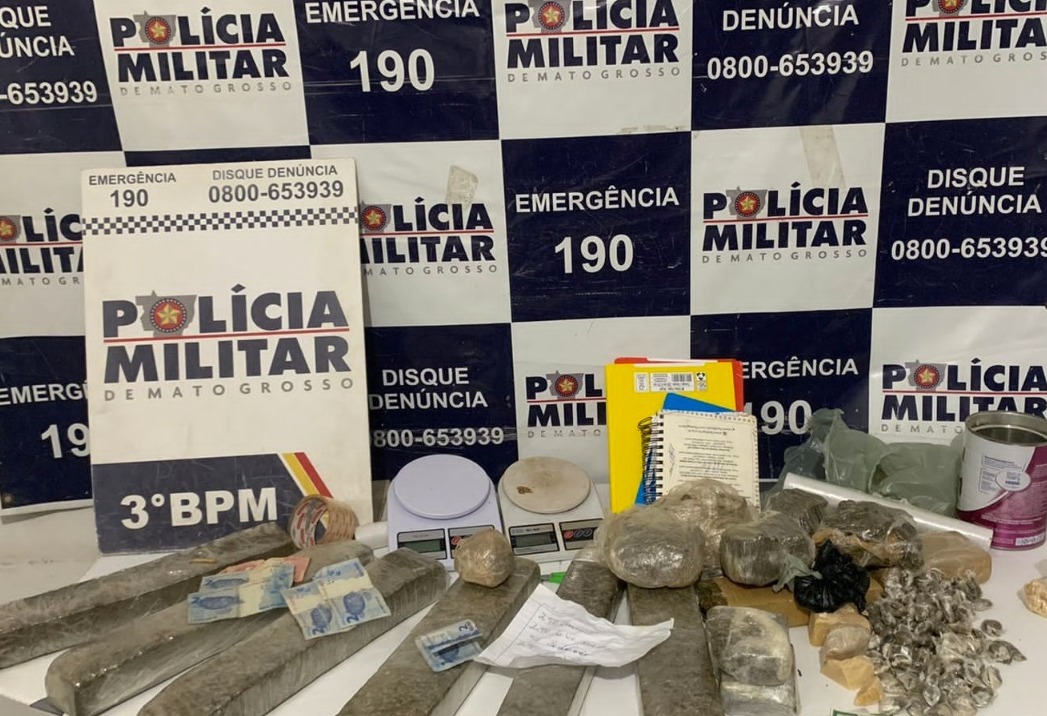 A Polícia Militar prendeu, ontem à noite, um jovem de 20 anos com mais de seis tabletes e outras porções de substância análoga à maconha e pasta base de cocaína. Ele comercializava as drogas em um terreno baldio localizado no bairro Morada da Serra, em Cuiabá.