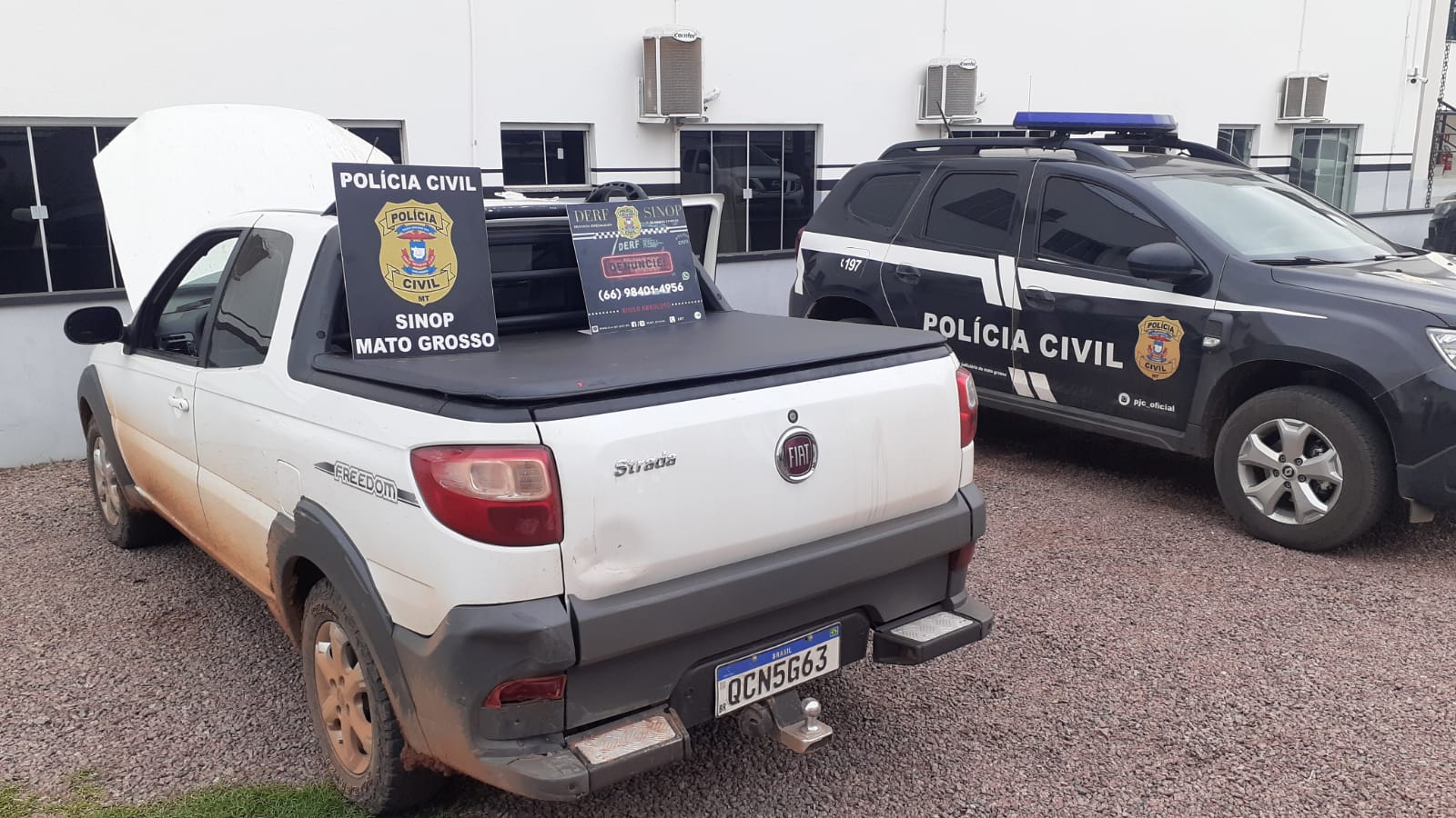 Além do cumprimento do mandado de prisão preventiva, o investigado estava em companhia de outro comparsa, em um veículo Fiat Strada, que foi furtado na cidade de Diamantino. Ambos foram conduzidos a delegacia e o veículo será devolvido à vítima.