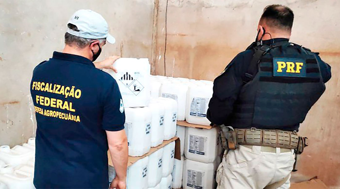 A Polícia Rodoviária Federal, em ação de fiscalização com Ministério da Agricultura, Pecuária e Abastecimento apreendeu mais de 3,1 mil litros de agrotóxicos irregulares, em Campo Novo do Parecis (391 quilômetros de Cuiabá), ontem.