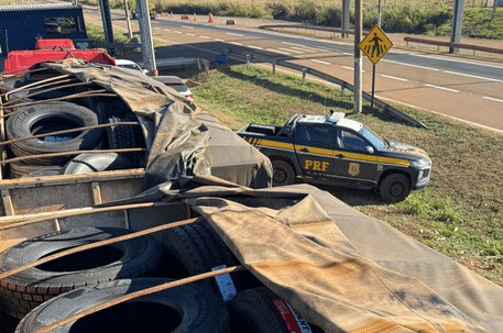 Durante abordagem a uma carreta Iveco hoje de manhã, na BR-364, em Rondonópolis, a equipe localizou aproximadamente 200 pneus contrabandeados. Ao ser questionado sobre a carga, o motorista, um homem de 47 anos, informou que transportava os pneus de Ponta Porã (MS) a Primavera do Leste, alegando que eram de sua propriedade e que os revenderia.
